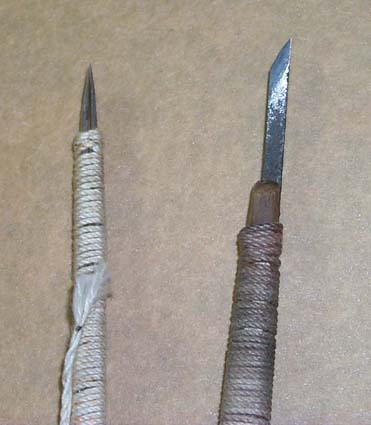 左は、主にカチンのような糸目(細いライン)を彫るときに使用します。